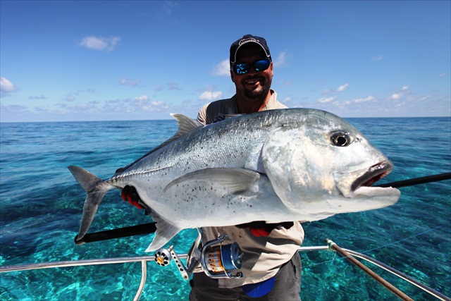 I remembered from my previous visit to Latham that big GT’s normally hold up at the outskirts of the reef, so I asked Mady to start from the deep water.